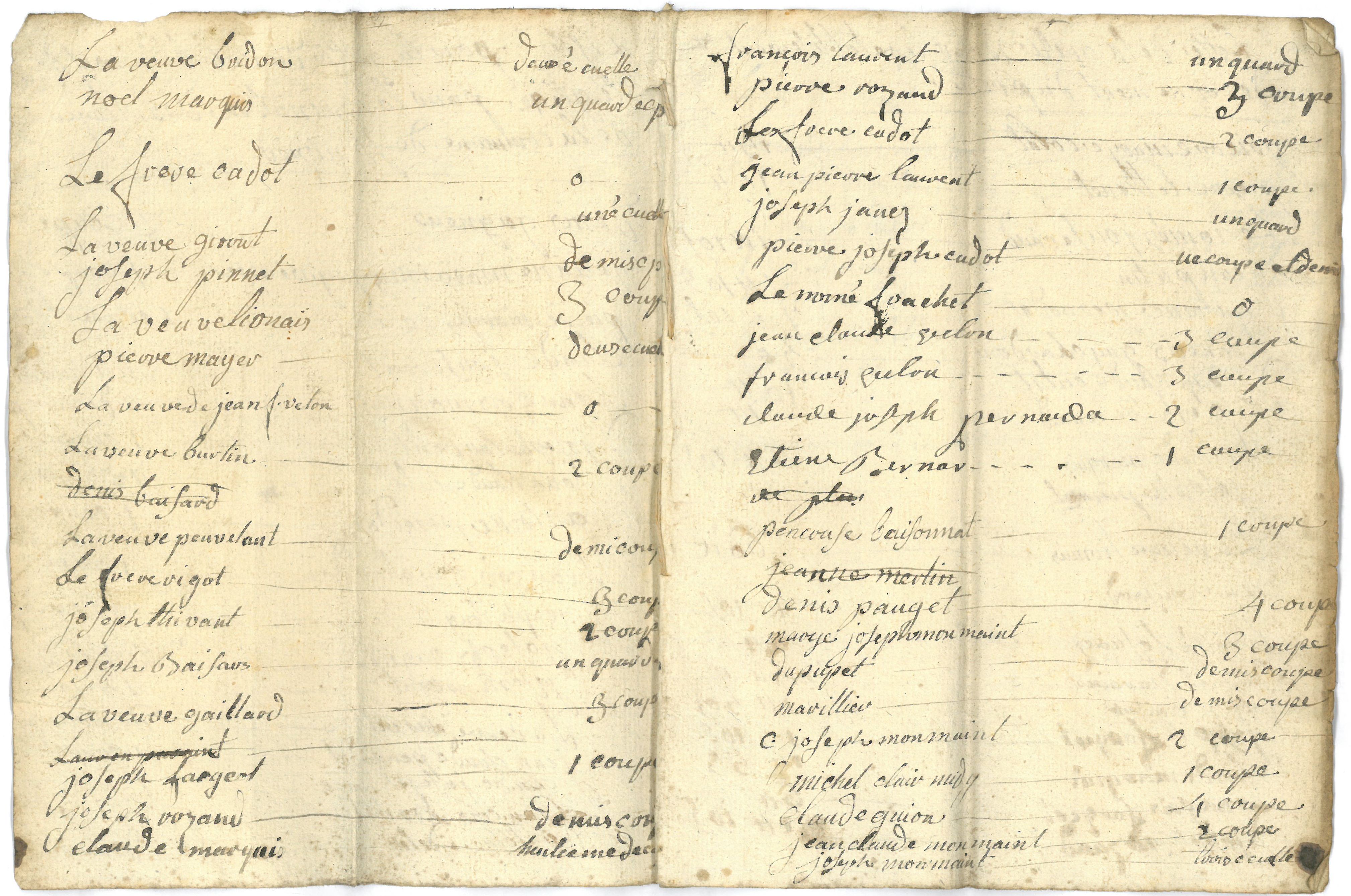 Liste nominative des souscripteurs pour le rétablissement de [l’église], pour la nomination des citoyens et le rétablissement des ornements du prêtre, vue 02.
